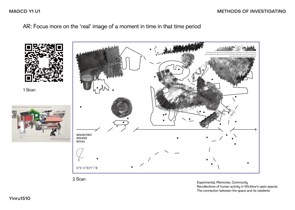 The idea at the time was that it was unclear, jittery, distorted, black and white because of the ‘memory’. But if you want to view a good memory of a moment in time, then scan the QR code to see the clear, colourful image displayed on the AR.