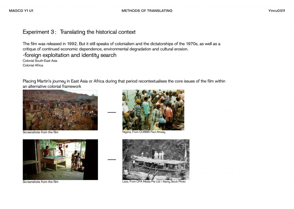 The film explores a lot about foreign exploitation and identity search. So I considered blending photographs from the same colonial period in Southeast Asia and Africa.