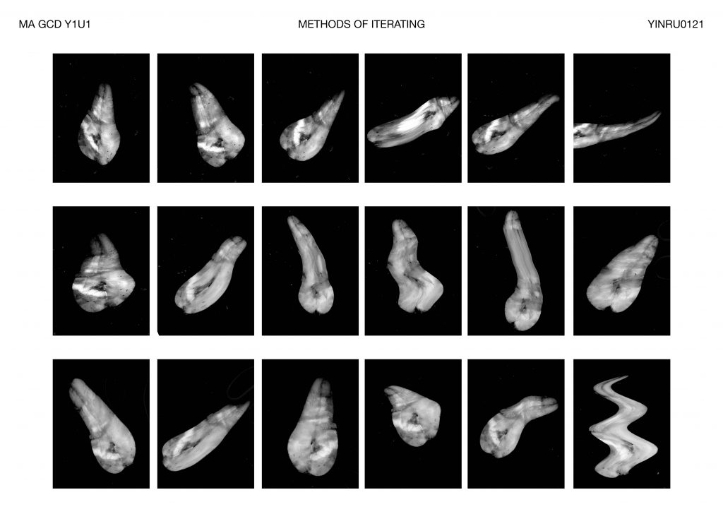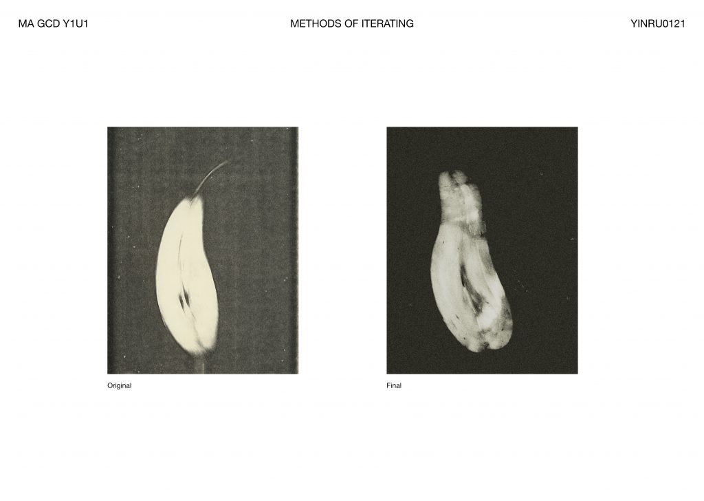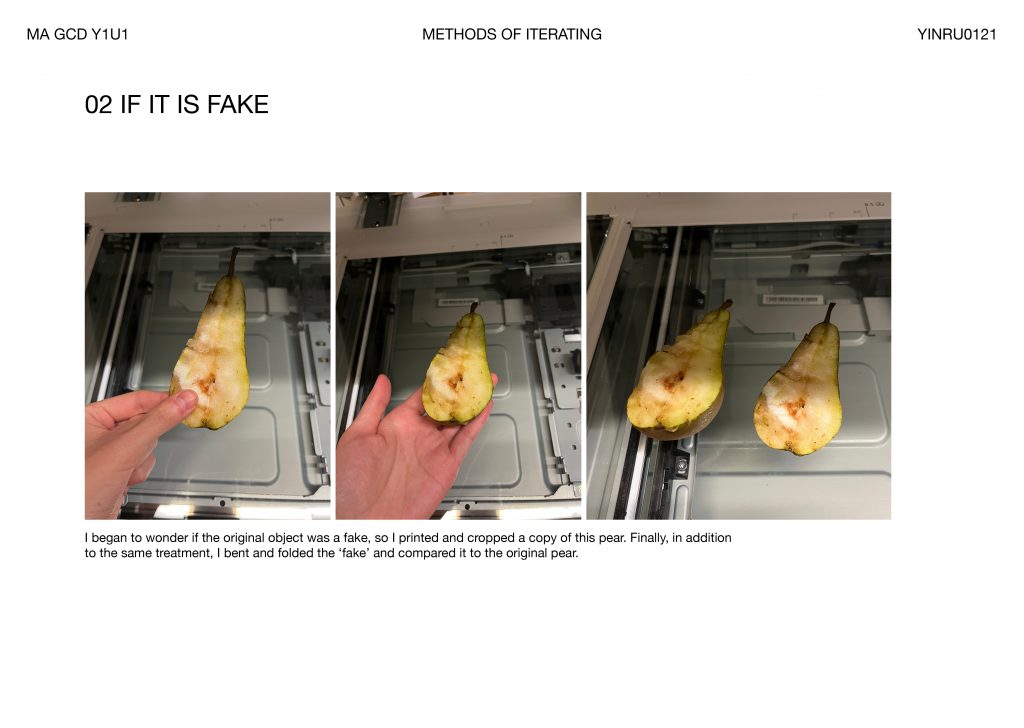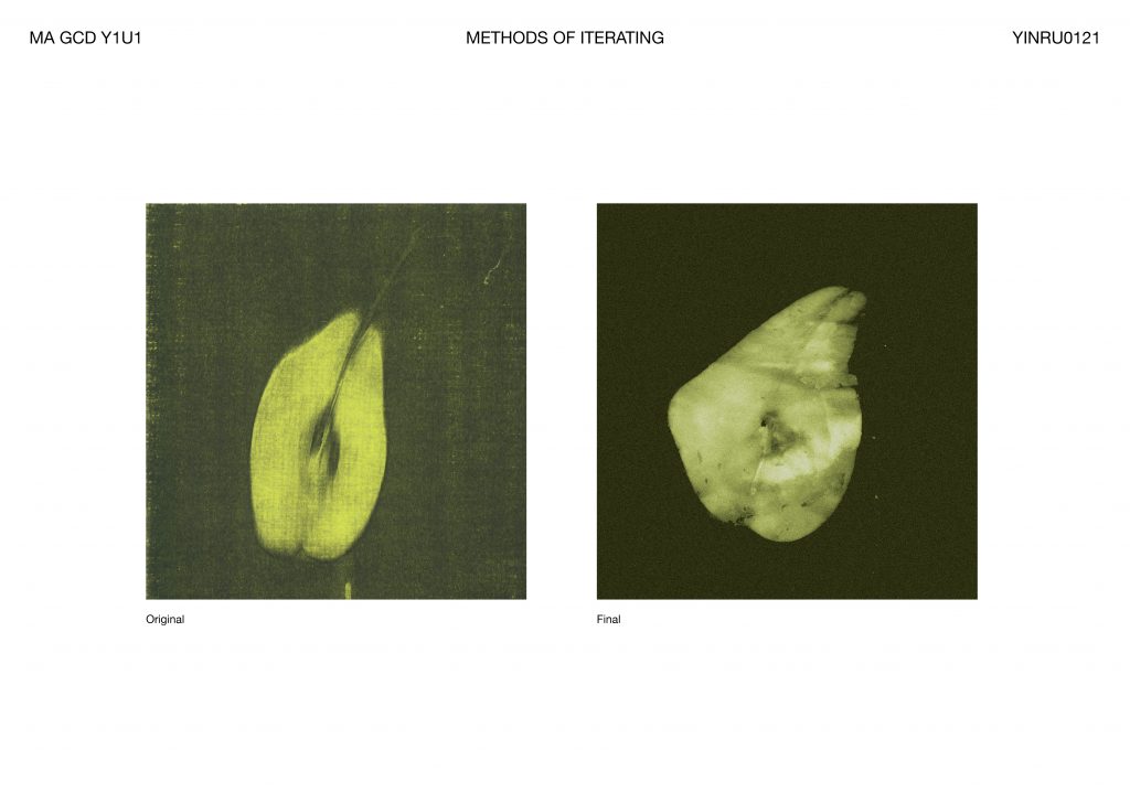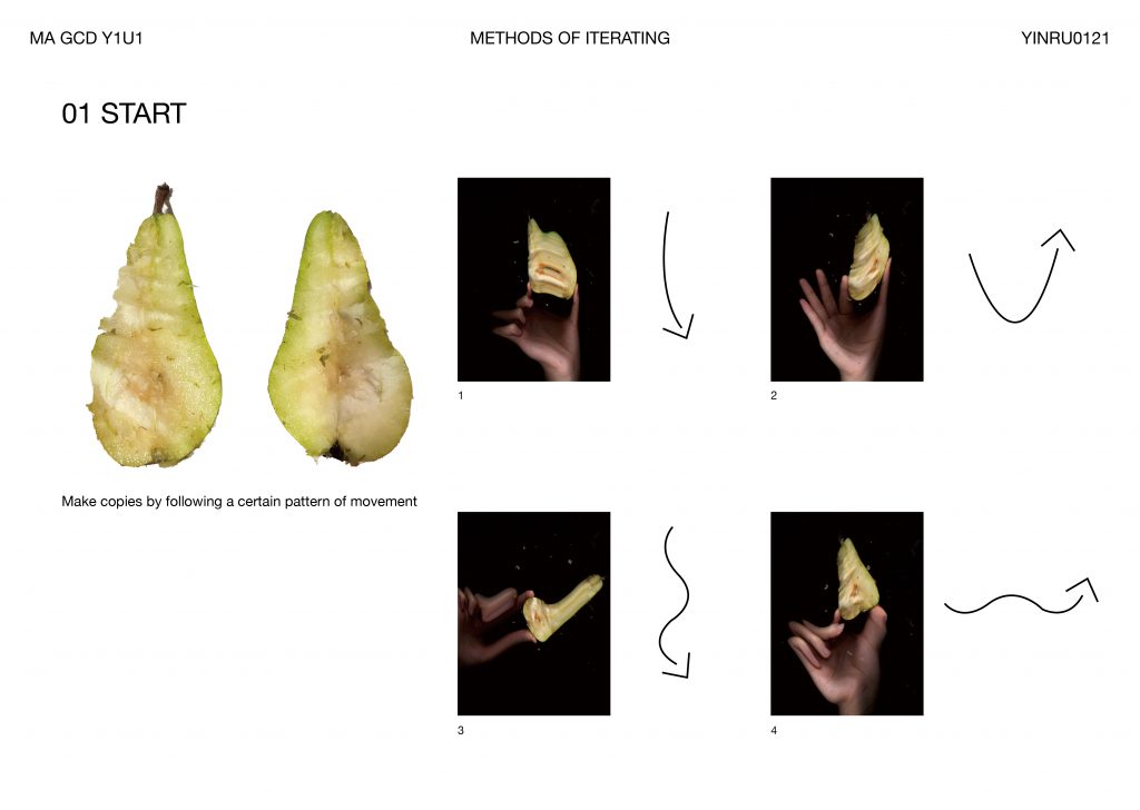 By analysing the movement and distortion of the images, I chose these two ‘pears’ to start the process.